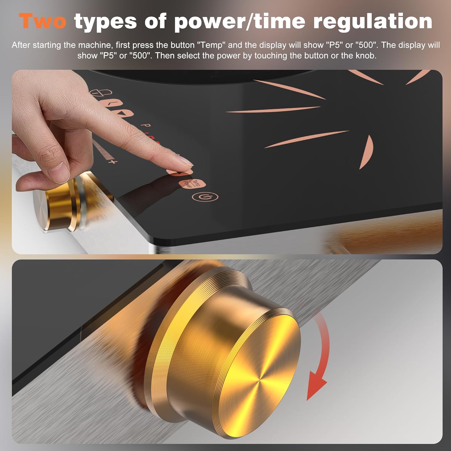 - 【Dual Control Methods & Stepless Adjustment 】Choose between touch control and knob control for seamless power adjustments, ranging from 400℉~1200℉(P0~P9). Cooksir countertop 2 burner electric cooktop allows you to have precise control over your cooking, from summering to frying, ensuring perfect results every time. Suitable for elders and people with poor eyesight.