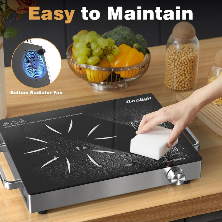 - 【Portable Single Burner Electric Stove】Cooksir countertop electric stove uses standard 110V~120V power socket of all households in North America. Its lightweight and handles design allows for easy transportation and storage, making it an ideal choice for small apartments, RVs, Campings, or as a backup cooking option in any home.