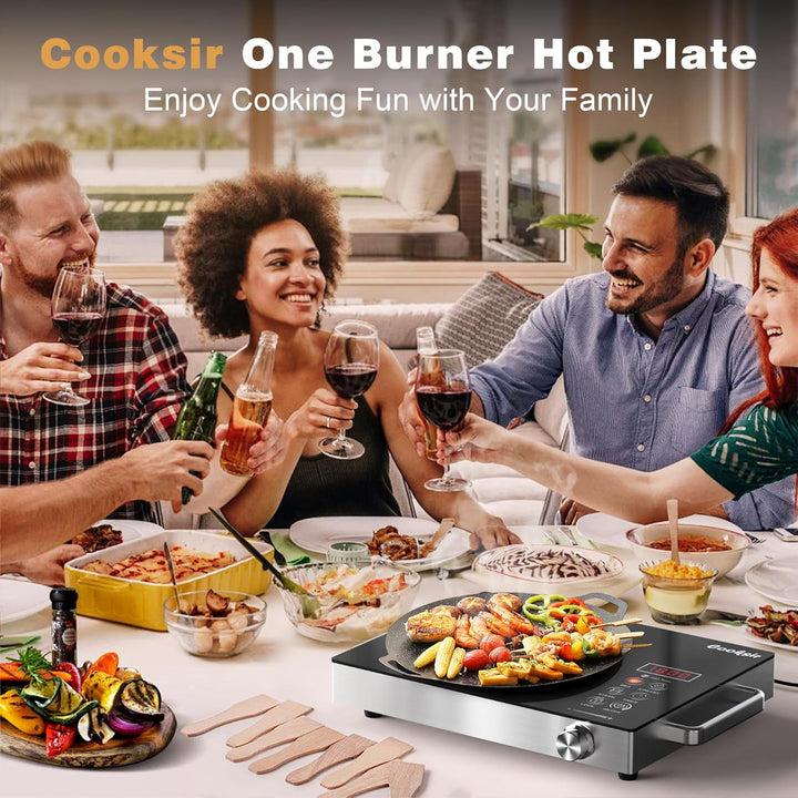 Cooksir Single Burner Electric Cooktop - 110V Portable One Burner Hot Plate 1800W, Countertop Electric Stove top for Home, Camping, RV, Timer, Child Lock, Steam, BBQ, Stir Fry, 110-120V Plug in