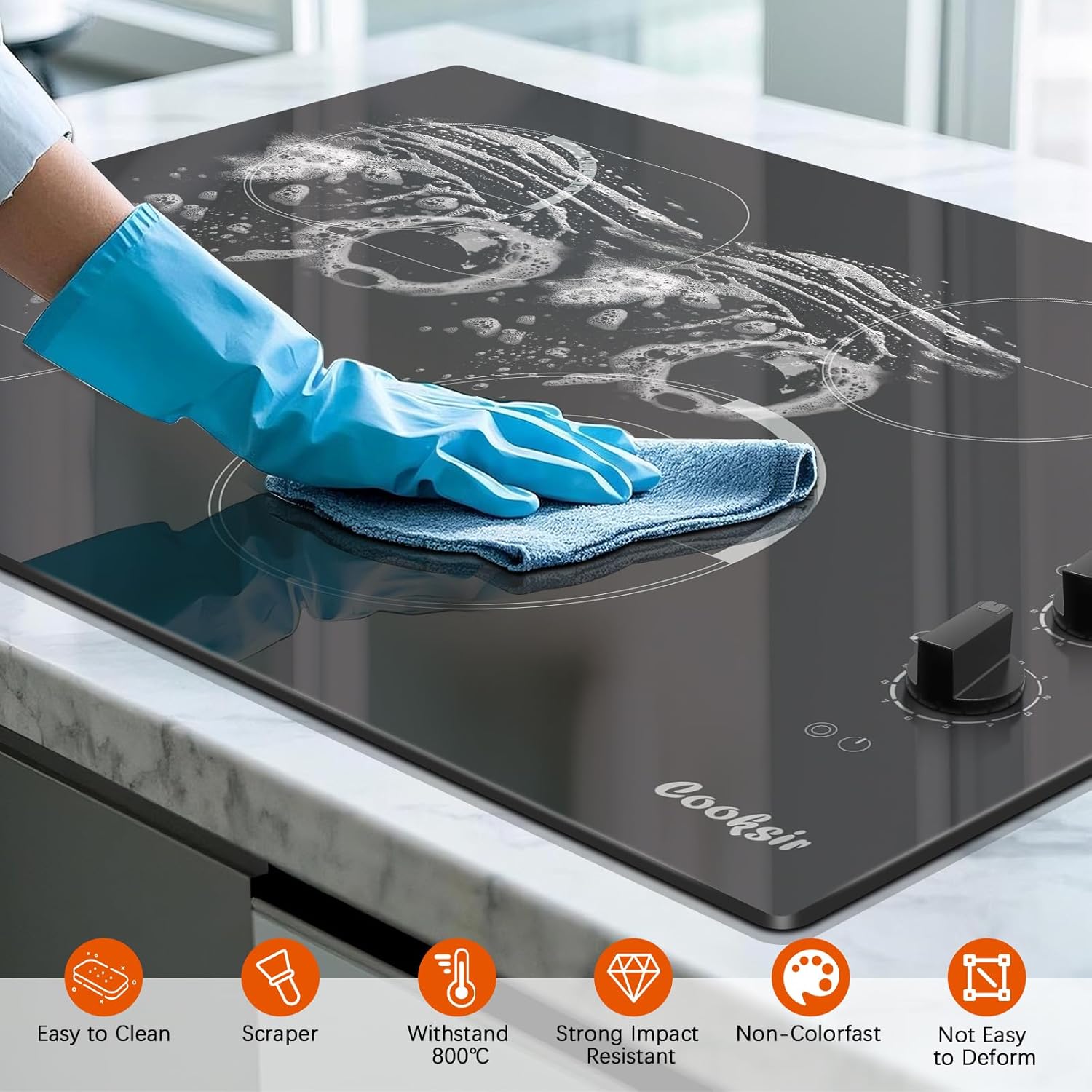- 【Durable and Easy-to-Clean】Built to last, this 30-inch electric cooktop is crafted with a durable design that can withstand the demands of daily cooking. The surface is made from high-quality materials that are resistant to scratches, stains, and heat damage, ensuring that your cooktop maintains its appearance and performance over time.