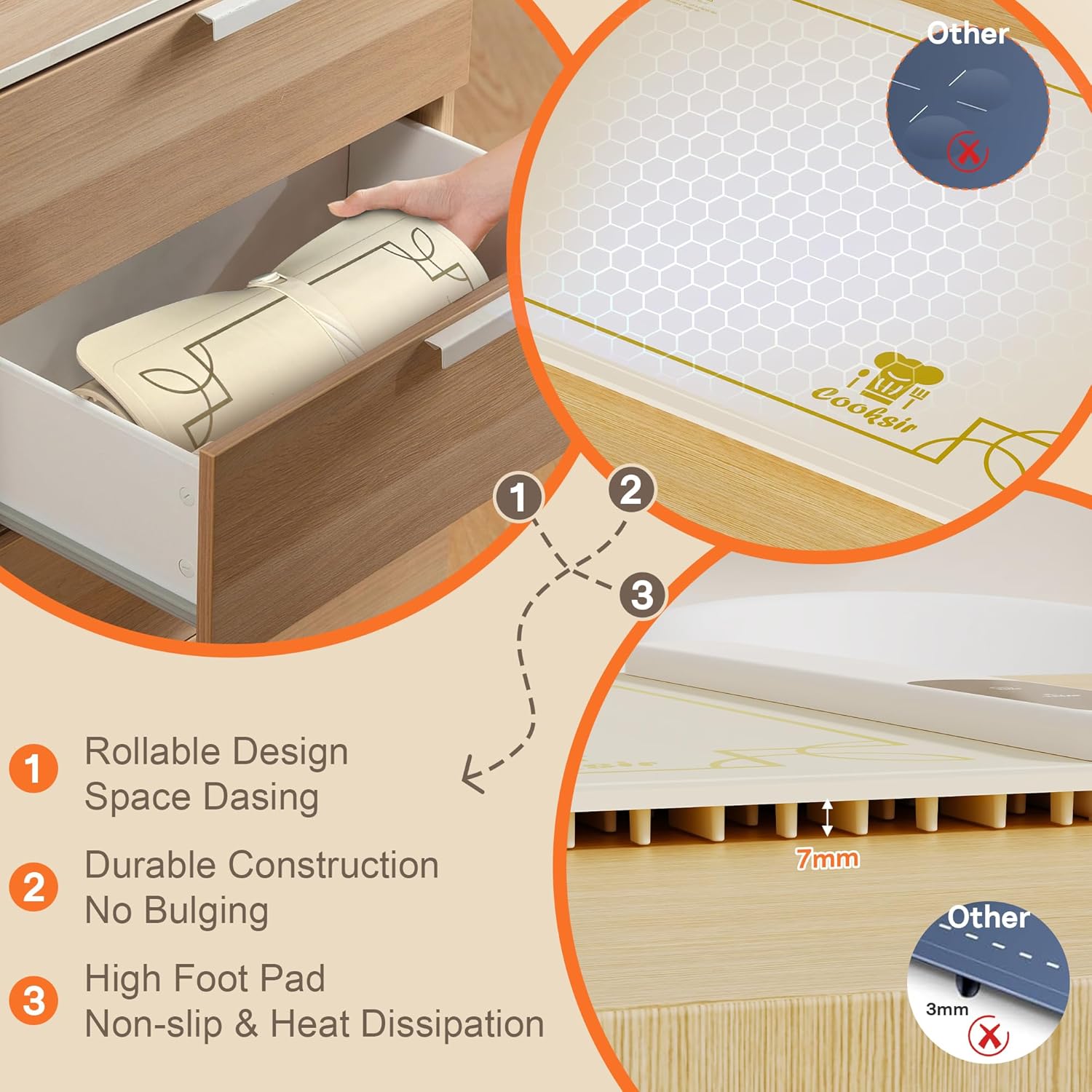 - 【Space Saving & Easy Storage】With dimensions of 23.98 x 17.32 x 0.71 inches, Cooksir party warming mat's foldable design facilitates convenient storage when not in use. It effortlessly folds into a compact form, serving as a space-saving option for kitchen countertops or cabinets. The included small bag provides additional convenience for tidy storage solutions.