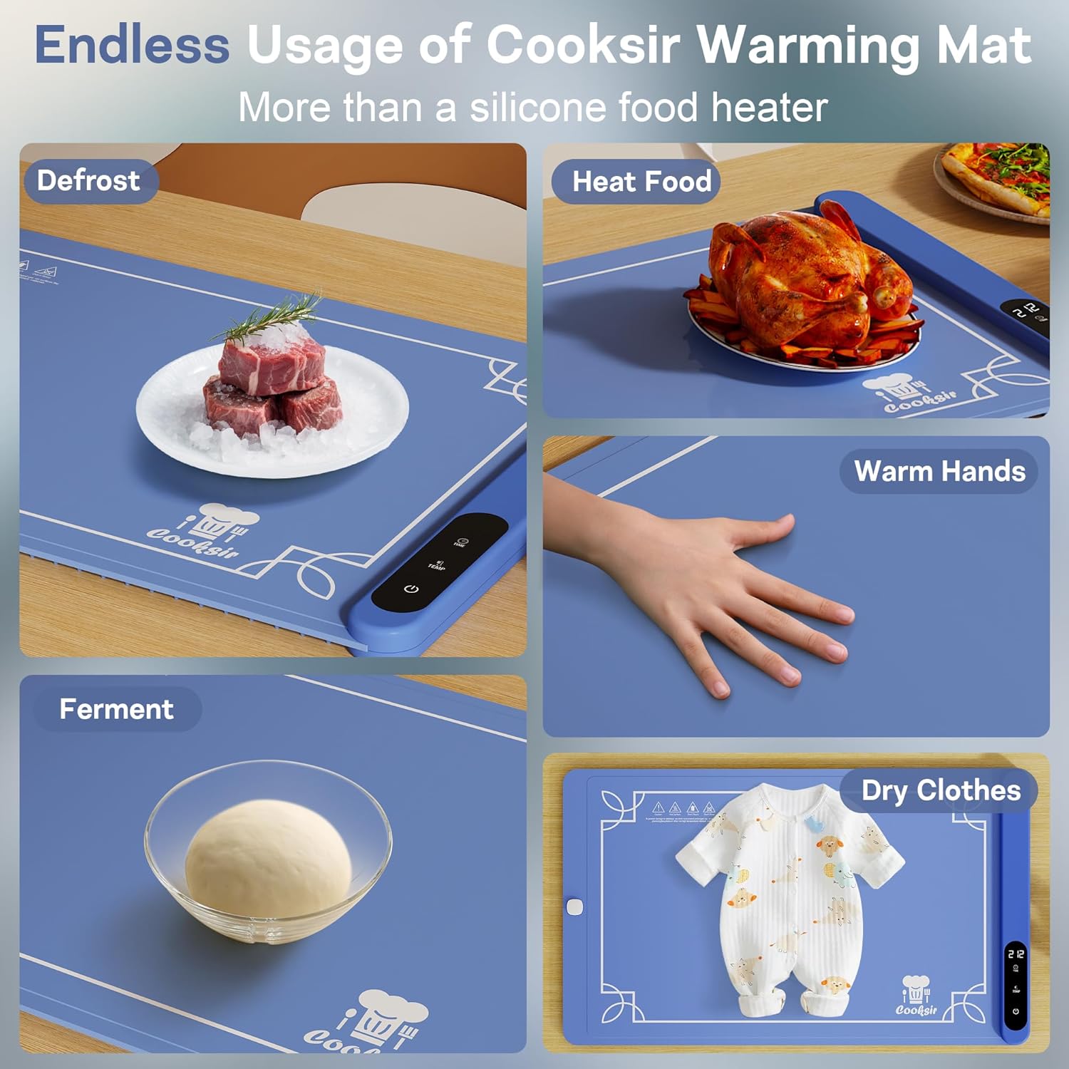 - 【Speedy and Consistent Warmth】 Cooksir foldable food warming tray is engineered with a rapid heating system that achieves ideal warming temperature in a mere 10 seconds. This swift response ensures your dishes are maintained at the optimal serving temperature without any delays. Crafted with full surface heating technology, this food warmer guarantees that every inch of the tray provides even heat, perfect for warming a variety of dishes evenly and efficiently.