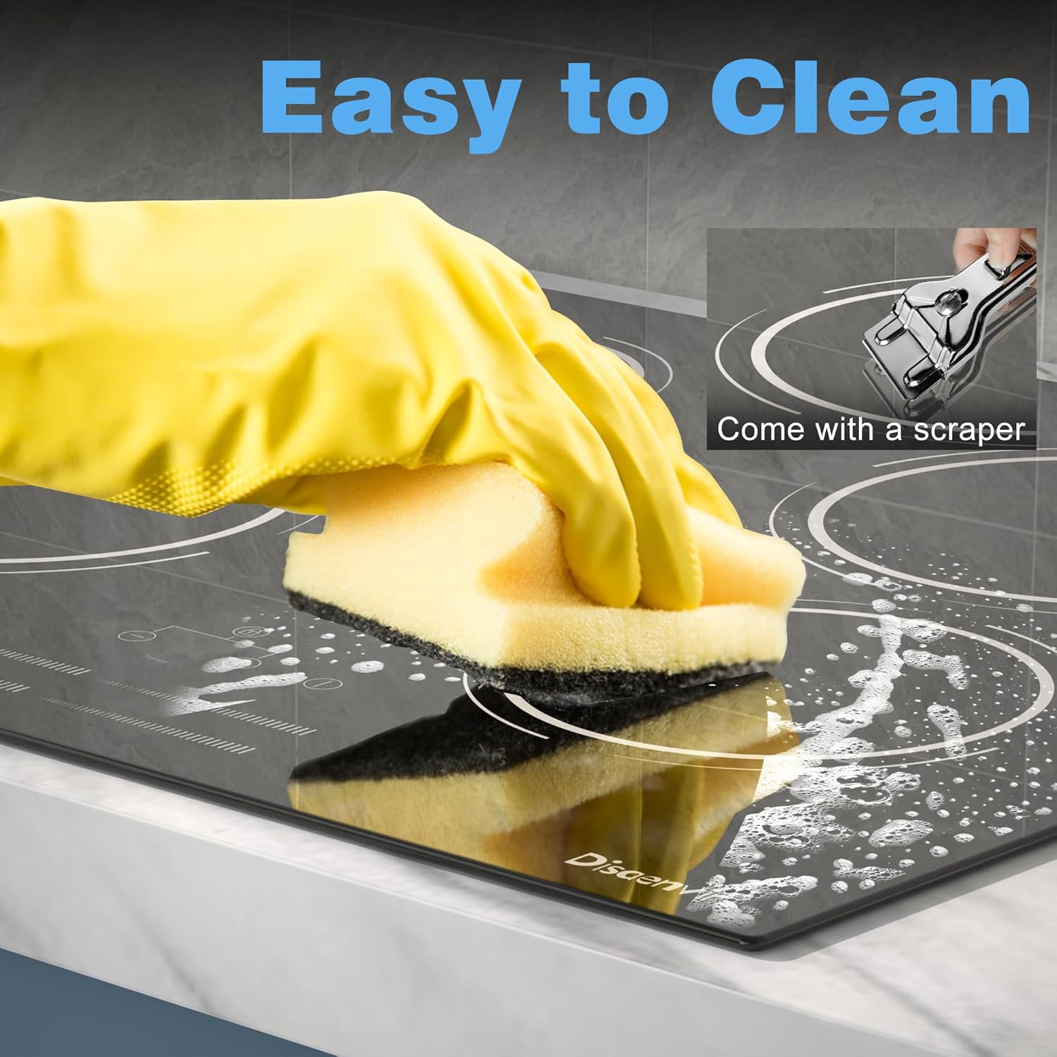 - 【Glass Cooktop, Easy to Clean】The black smooth glass on the surface of this 4 burner electric cooktop is made of high-quality materials, which is sturdy, durable, scratch resistant, high-temperature resistant, and easy to clean, just need to be lightly wiped with a damp cloth. By the way, the glass stove's package comes with a cleaning scraper tool.