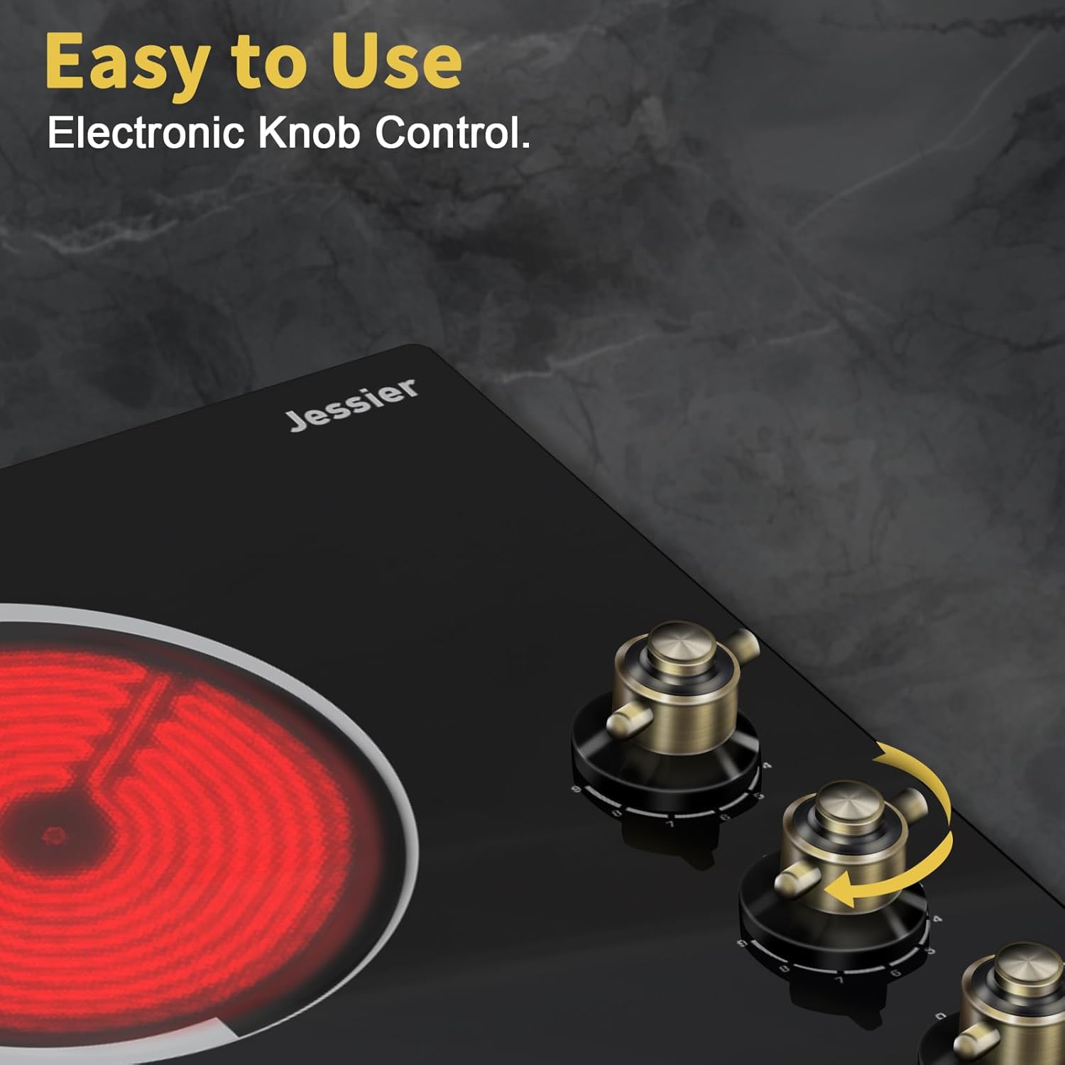 - [9 Power Levels Electric Cooktop] Our electric stove top has 9 power levels to meet your needs for better temperature control and variety of cooking styles. With this simple knob electric cooktop, you can easier choose different powers according to different foods to make delicious food, prefer for braise, fry, simmer, steaming, boil, stir-frying, or roast. Simple Jessier stove top makes everything simple, but enrich life.
