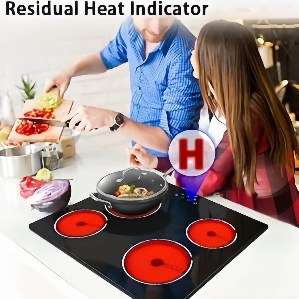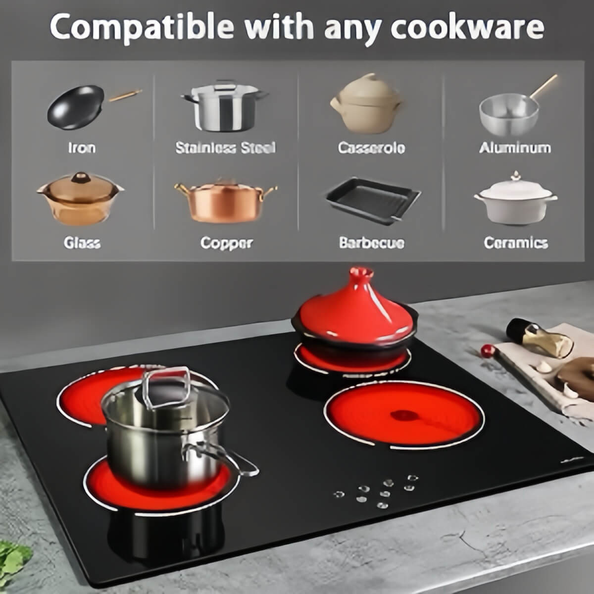 - Sleek Design & Durable in Use: The 4 zone cooktop made of ceramic glass is scratch-resistance and high temperature. The compact and built-in design takes most advantage of the countertop space.