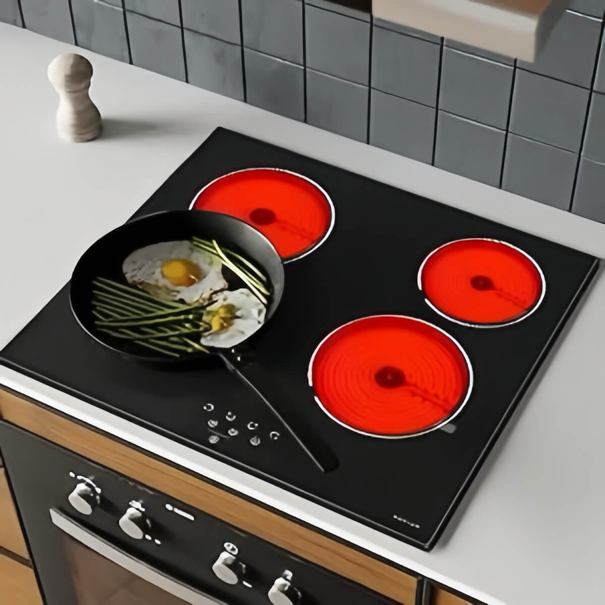 - Works with Most Cookware: Ceramic cooktop heats most types of flat-bottomed cookware, including iron, aluminum, stainless steel, and glass.
