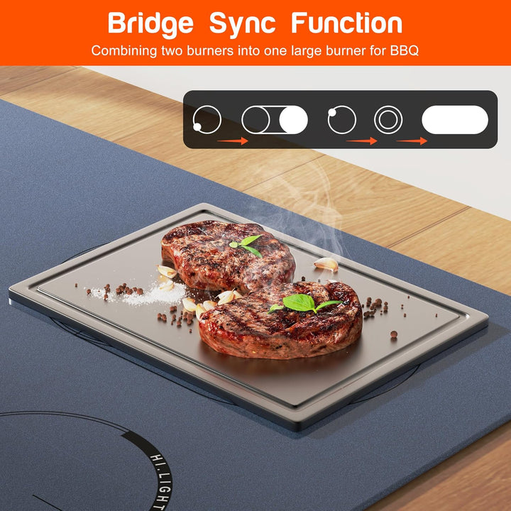 - 【Dynamic Expanded Zones】 Among the standout features of this electric cooktop is its Oval Zone functionality. It combines two separate heating elements into one, allowing for the flexibility to use large cookware such as a griddle or fish steamer or smaller pots and pans according to your needs. This feature significantly enhances the cooktop's versatility, enabling you to effortlessly switch between cooking methods and catering to a range of recipes, from simmering sauces on a low heat to quick searing on high heat.