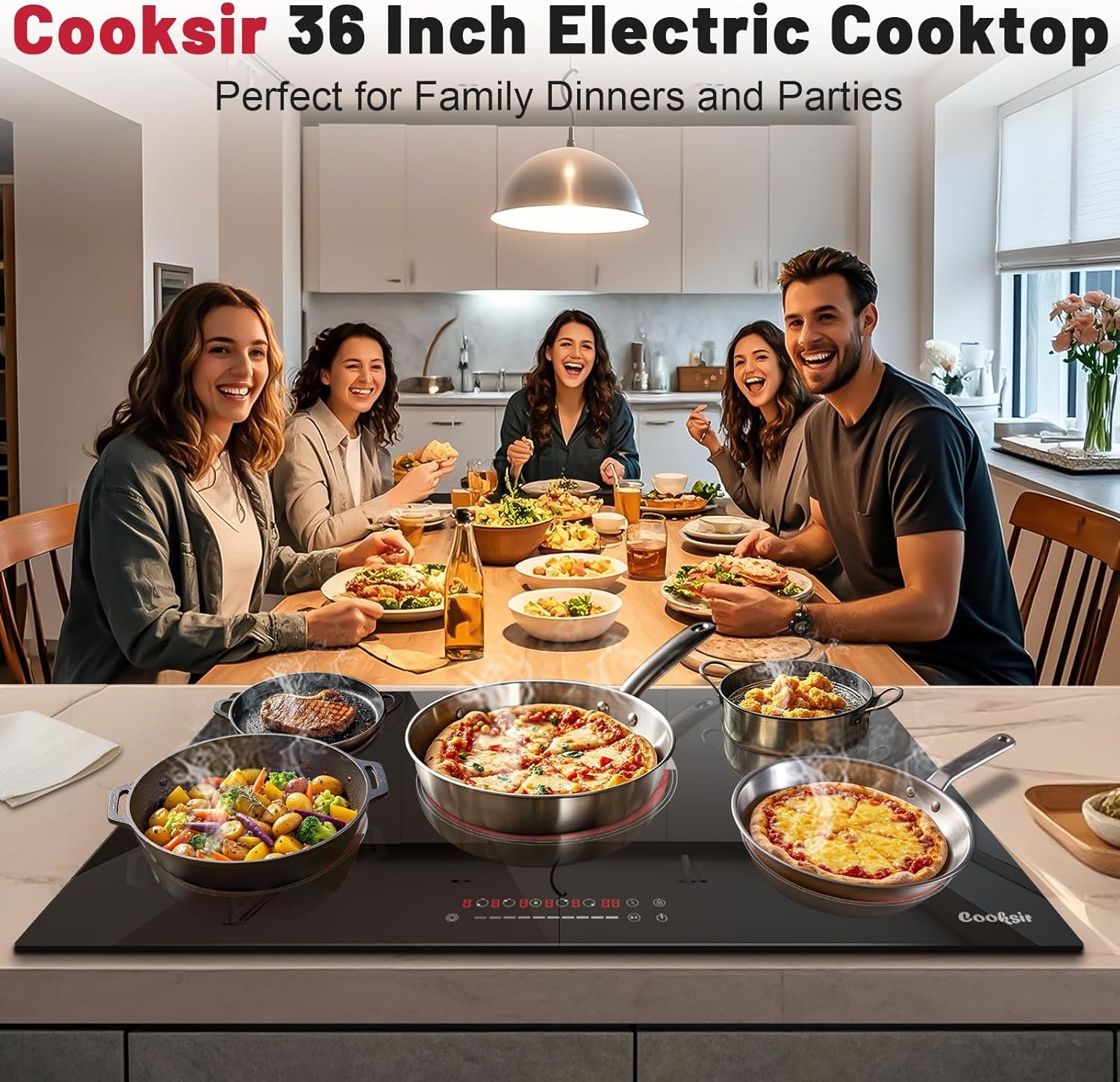- 【9200W High Power Electric Cooktop】 Cooksir 36 inch electrical stove cooktop has 5 burners, one of which has triple heating zone. 5 burners in different size provide convenience for cookware in diversified sizes. Cooksir 30" electric stove can reach the high power levels of 9200W: 2000W+1200W+1200W+1800W+3000W so the food can be heated up quickly. 5 burners and high power levels can bring you an efficient and enjoyable cooking experience.